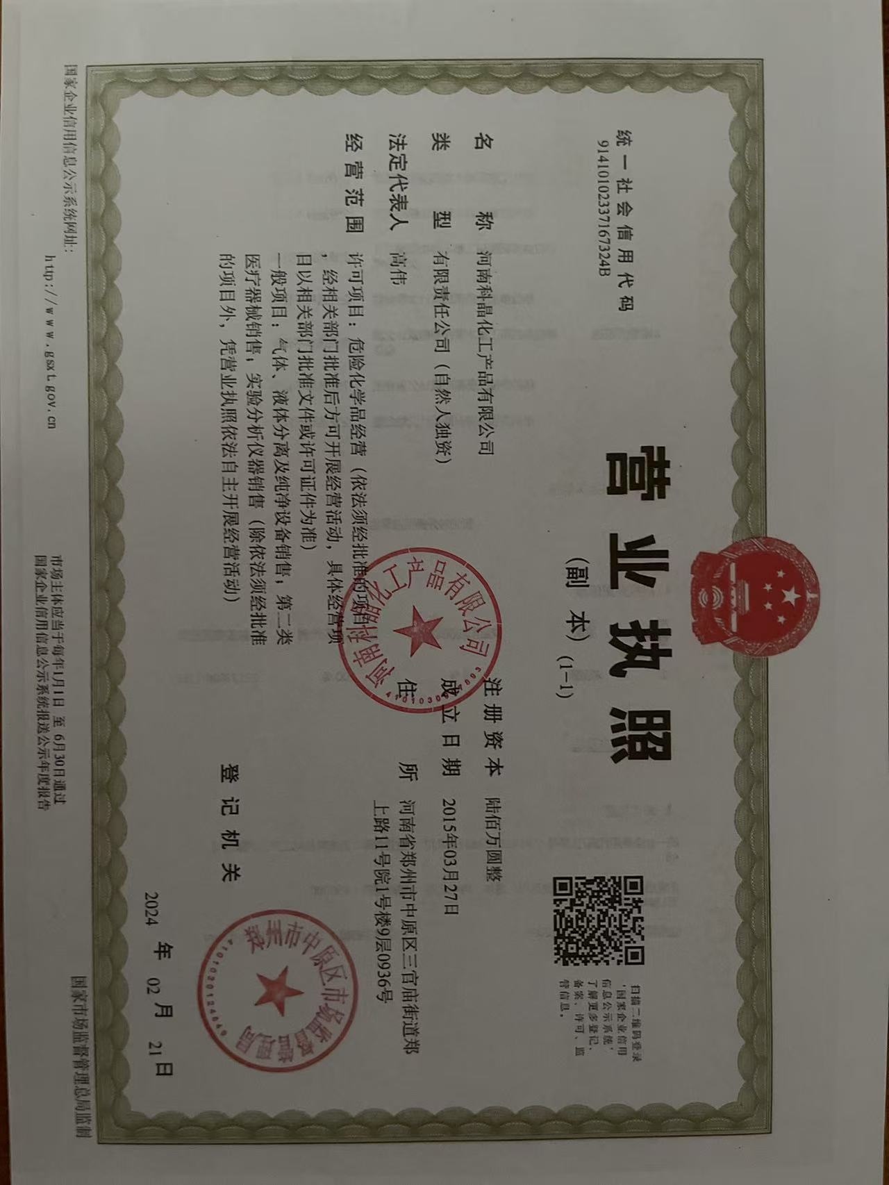 河南科晶化工产品有限公司